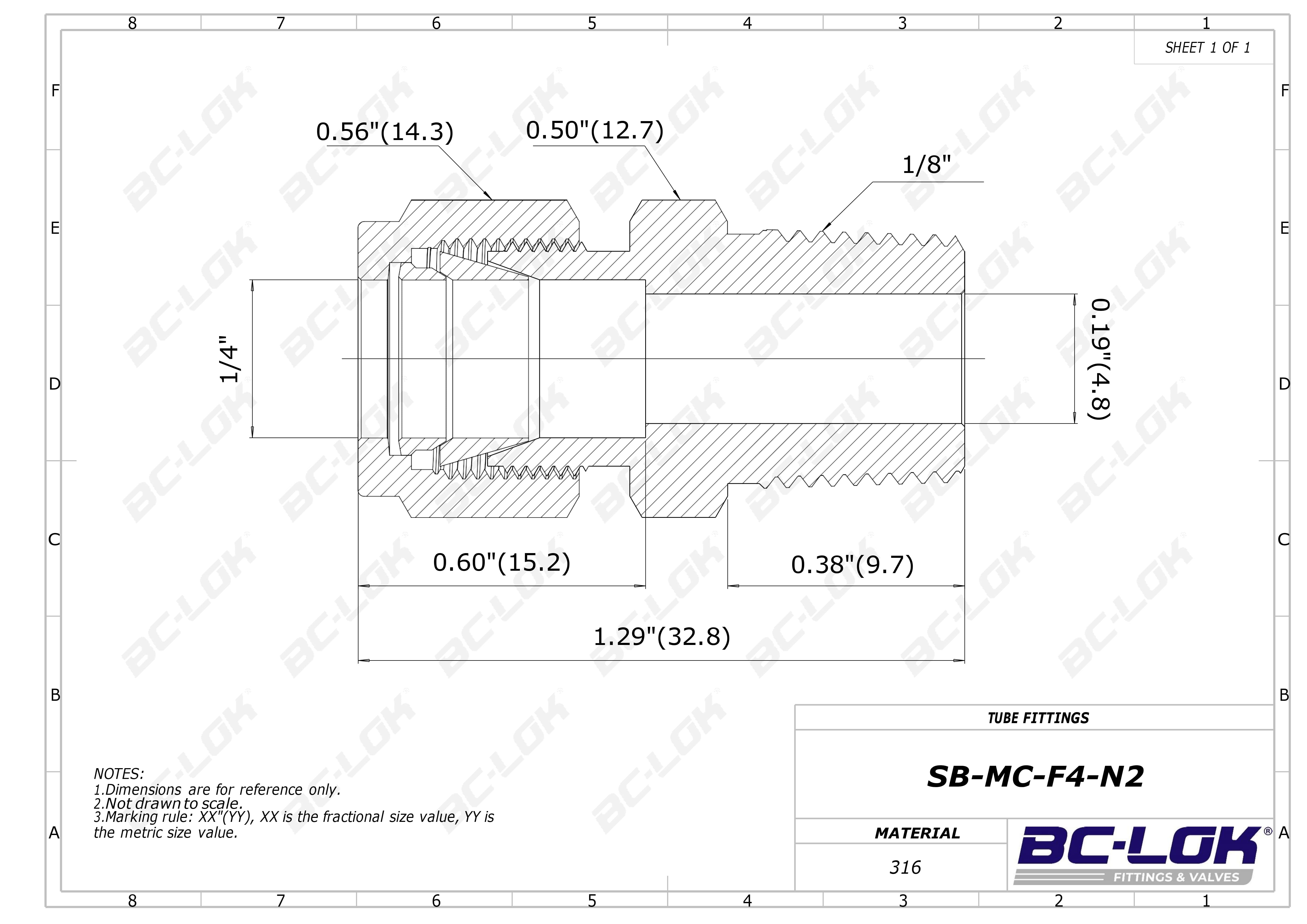 {Fitting type} of stainless steel 316SS, Fractional 1/4 x NPT Thread 1/8