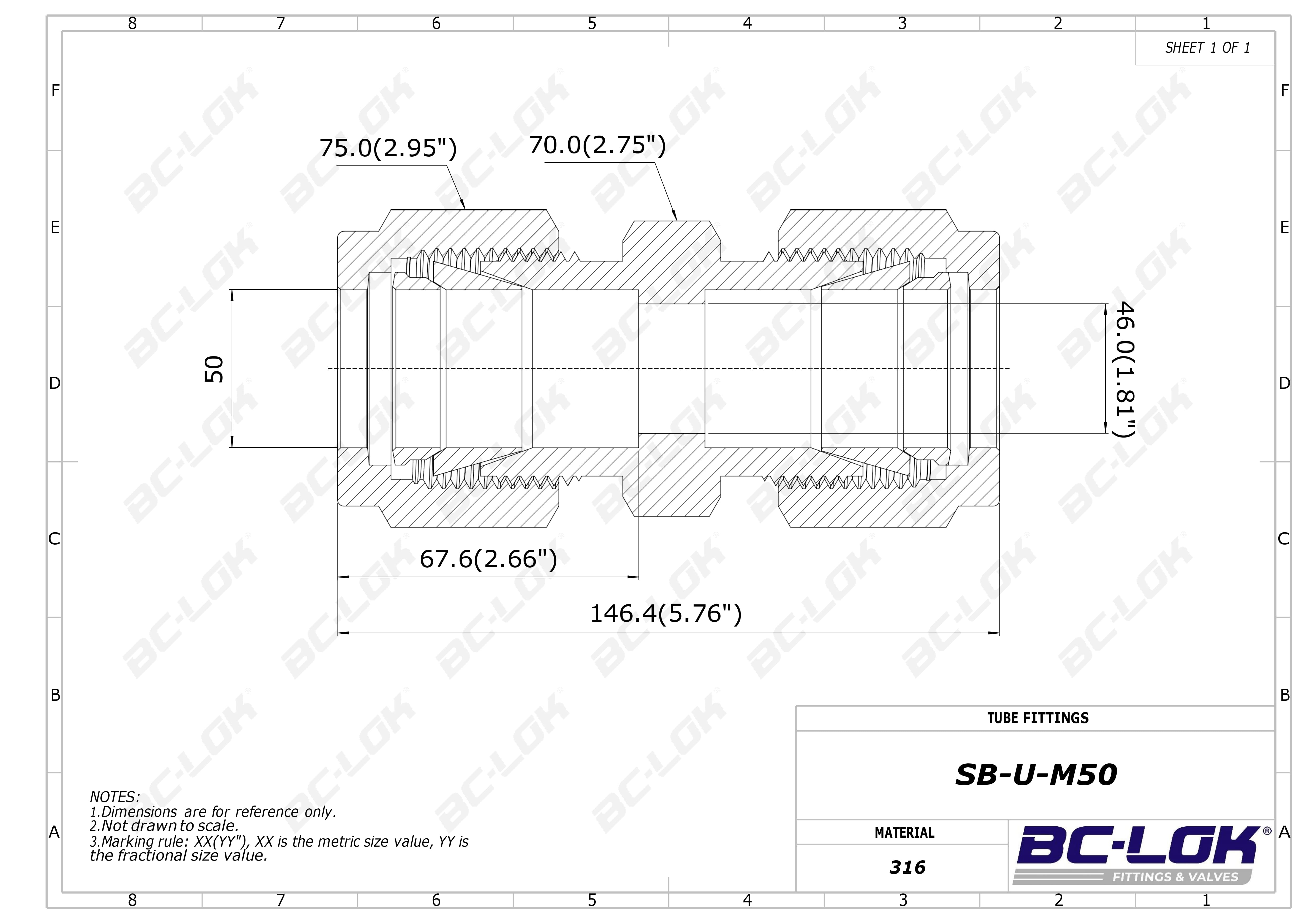{Fitting type} of stainless steel 316SS, Metric 50