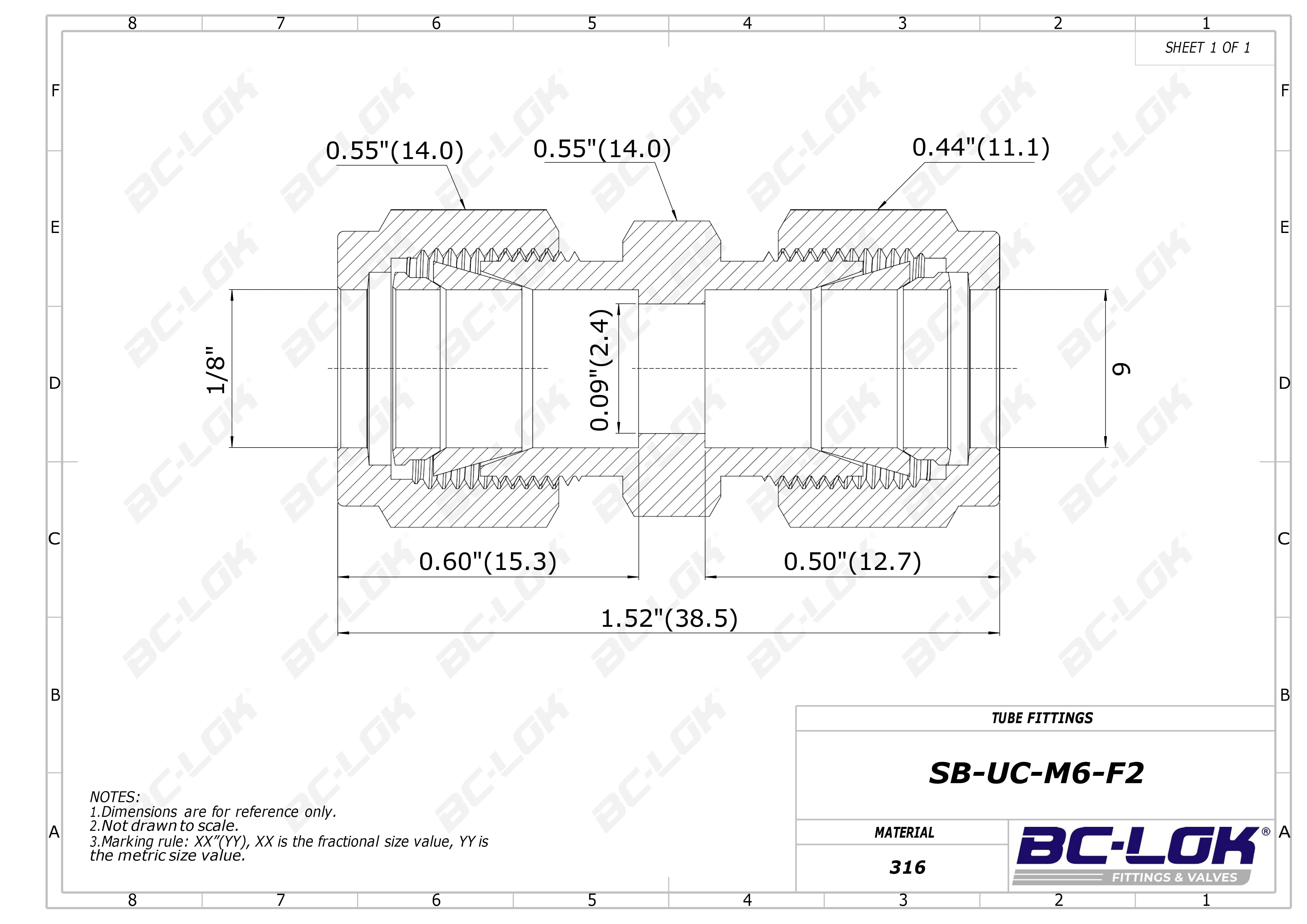 {Fitting type} of stainless steel 316SS, Metric 6 x Fractional 1/8