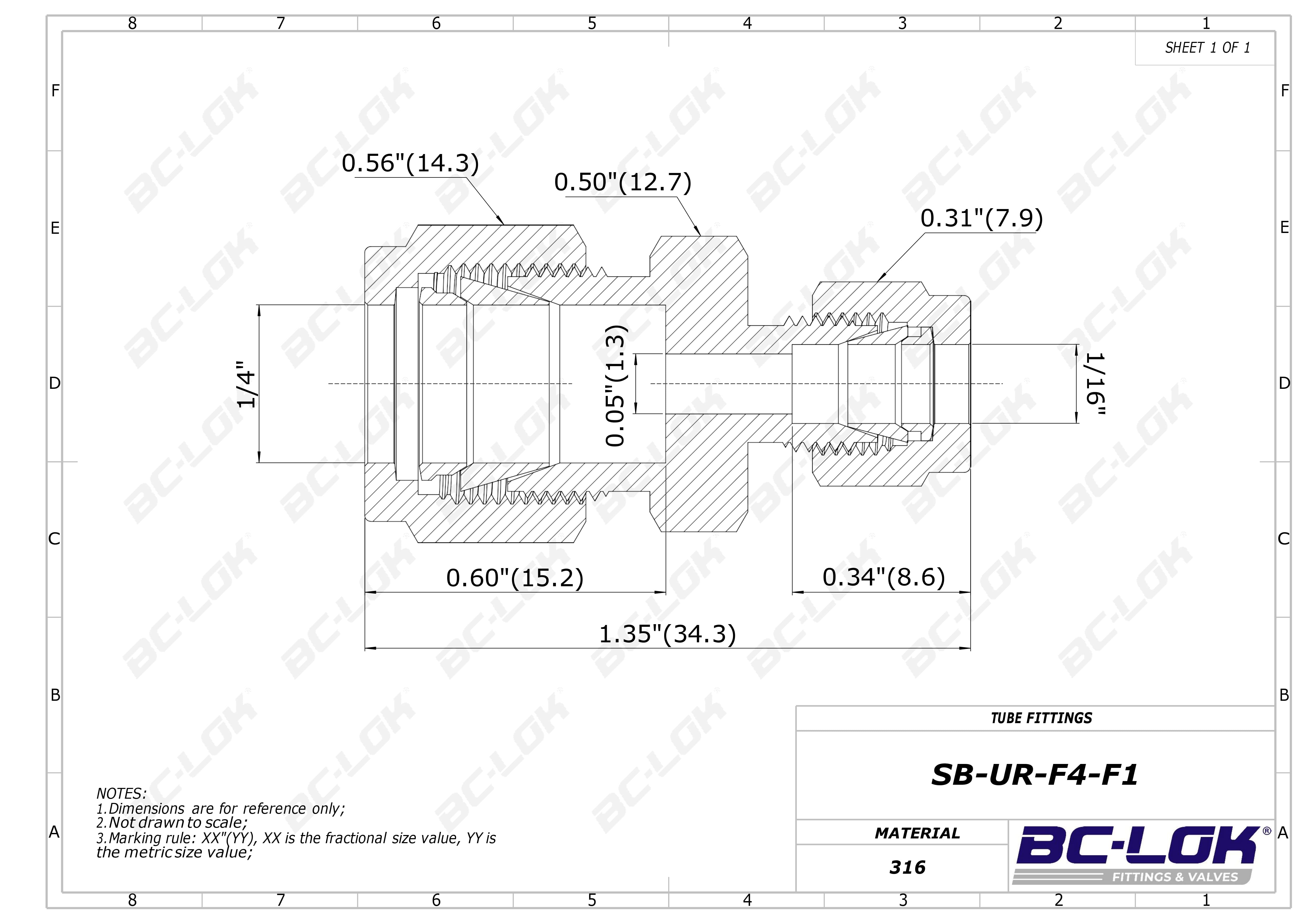 {Fitting type} of stainless steel 316SS, Fractional 1/4 x Fractional 1/16