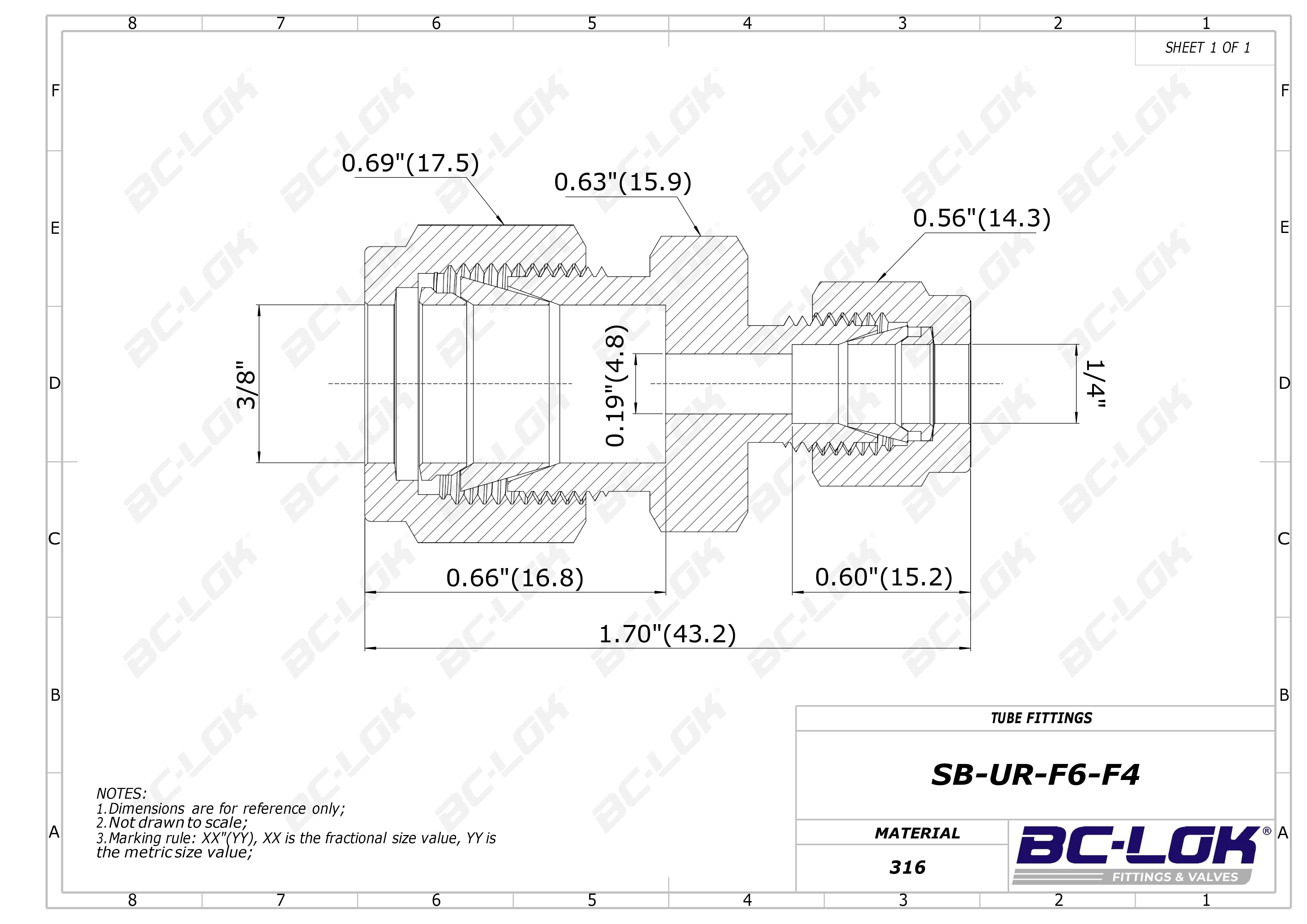 {Fitting type} of stainless steel 316SS, Fractional 3/8 x Fractional 1/4